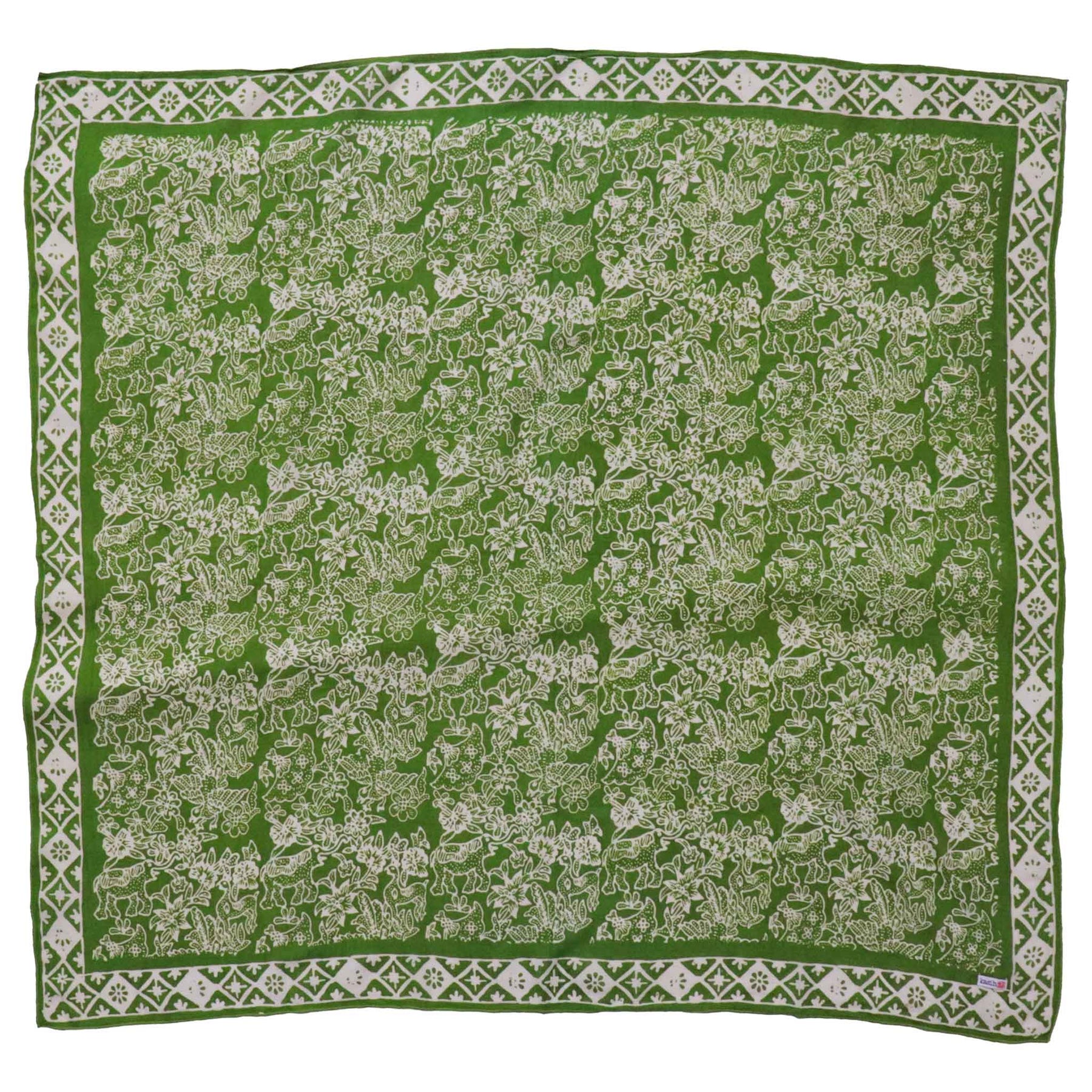 Experience authentic craftsmanship with the Green Serenity Batik Bandana, an XL size piece of wearable art handmade by artisans in Java using the centuries-old wax and dye batik technique.