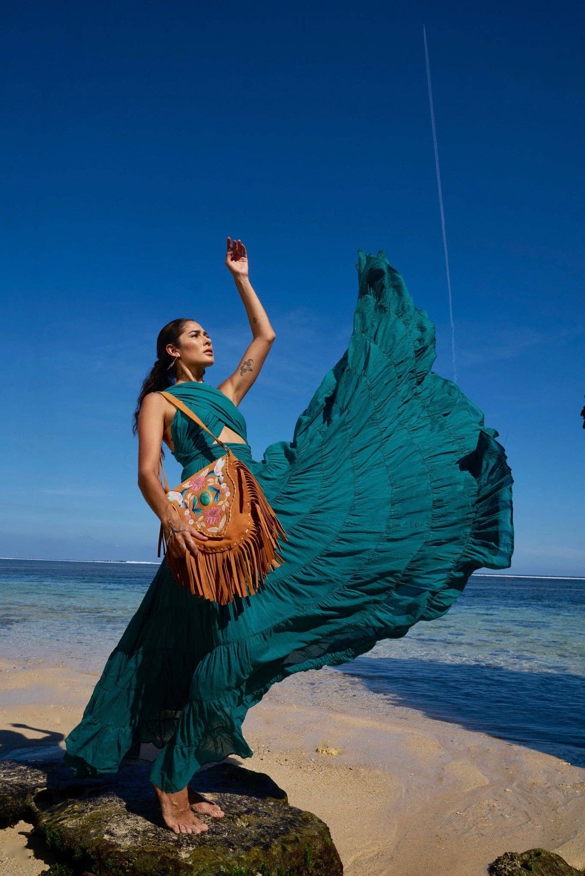 Carry the beauty of nature with you with this exquisite suede saddle bag.