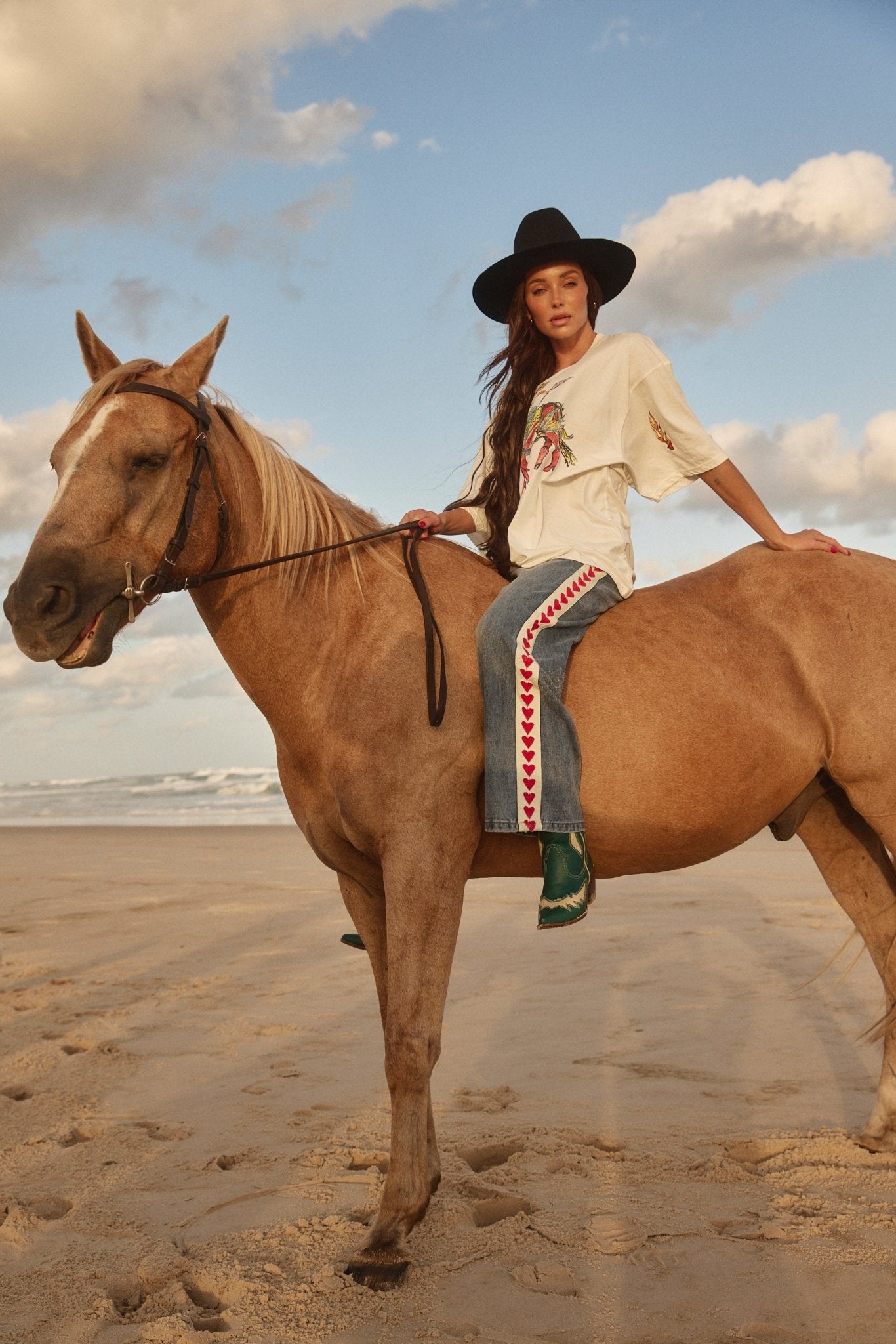 High Rise Barrel Denim Jeans (Cool Transfer Print)