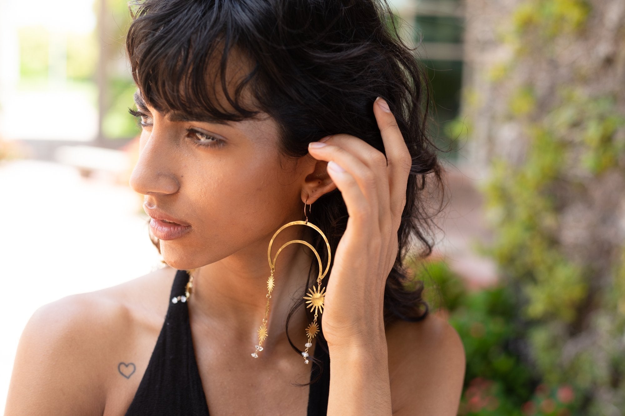 Starfish Hoop Earrings - Galaxy Black + Gold