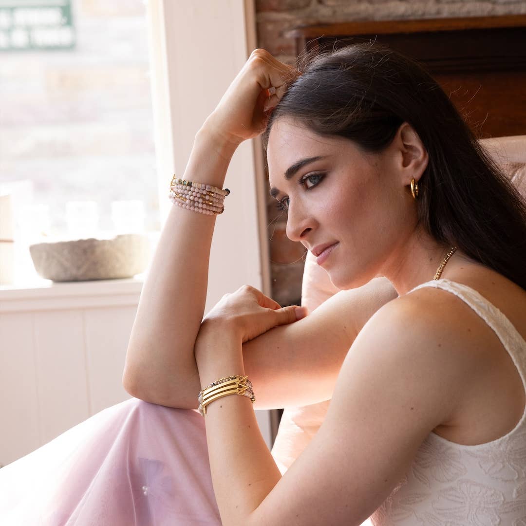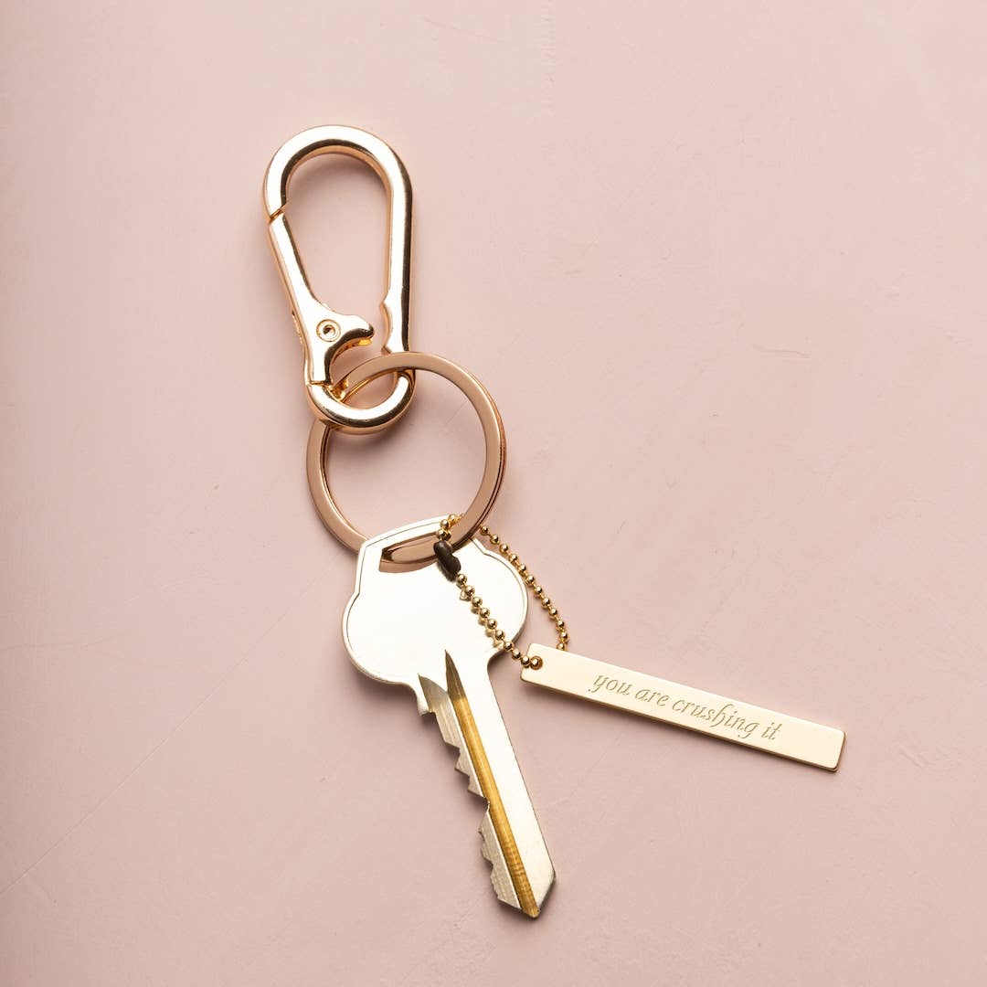 Each piece is accented with gold or silver dipped beads and includes a bonus metal tag with the matching engraved affirmation, perfect to add to a keychain!