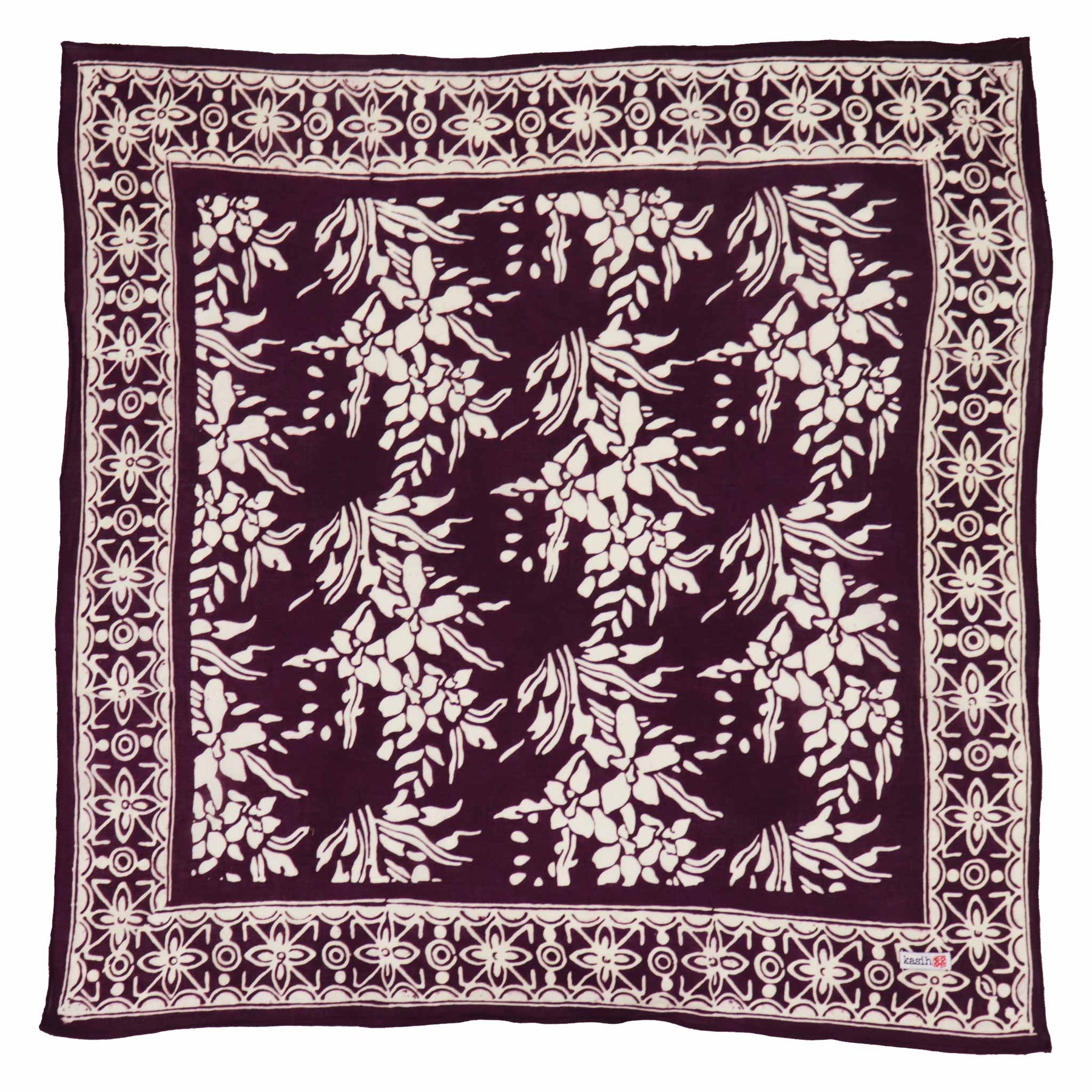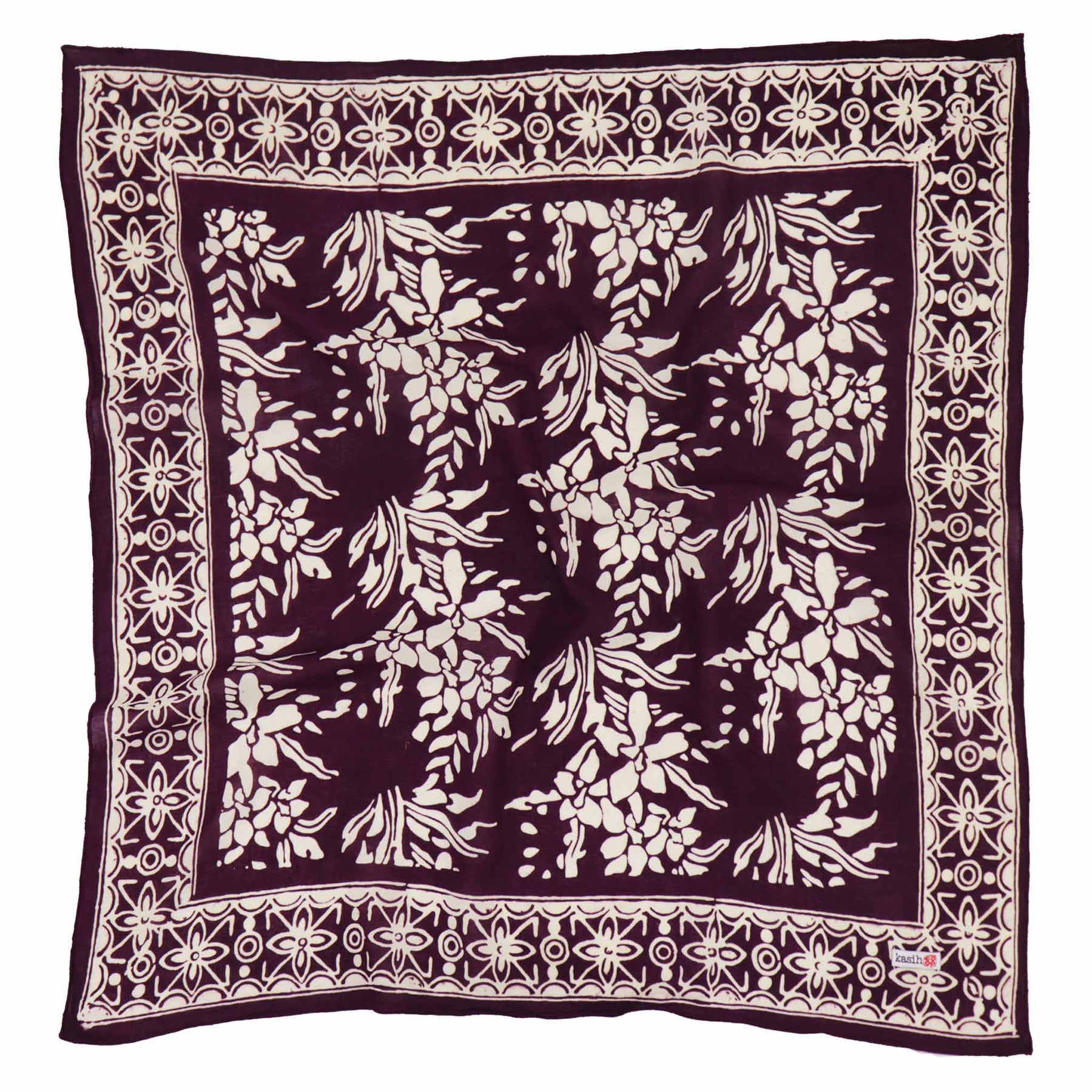 This bandana is crafted from lightweight, 100% white cotton fabric that is meticulously hand-stamped and hand-dyed using the 700-year-old batik technique, followed by sun baking.