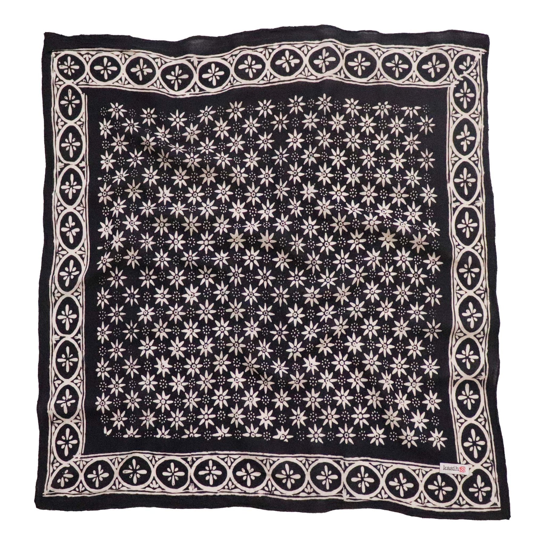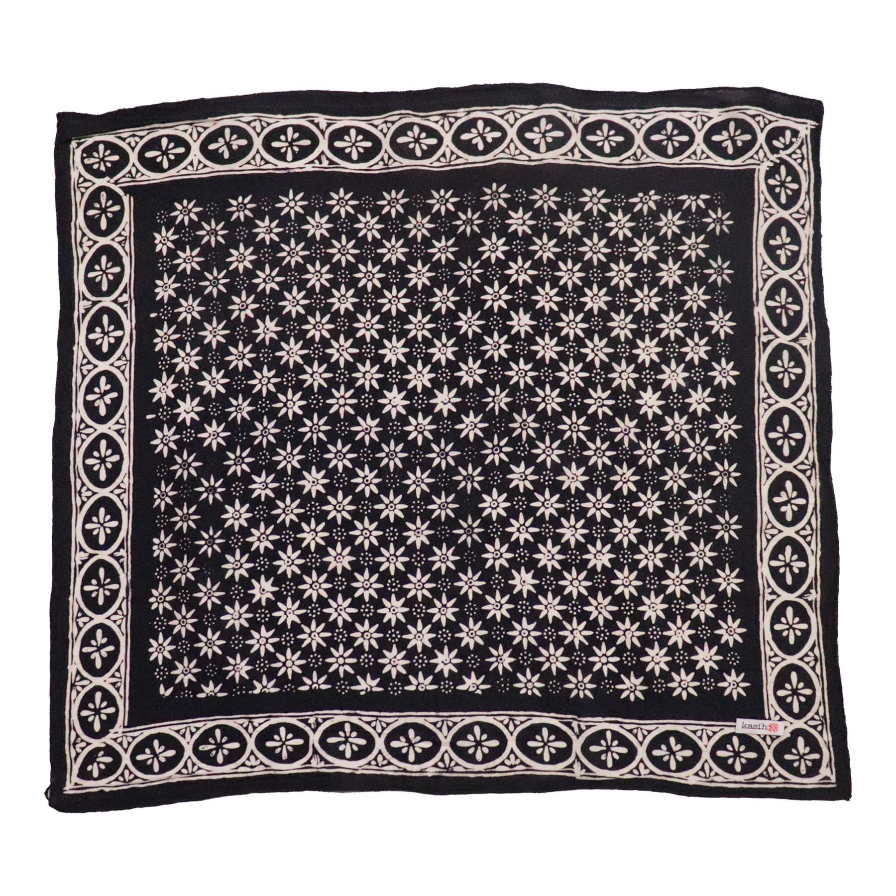 Hand Dyed Batik Bandana, 100% Soft Cotton, Black Mirage