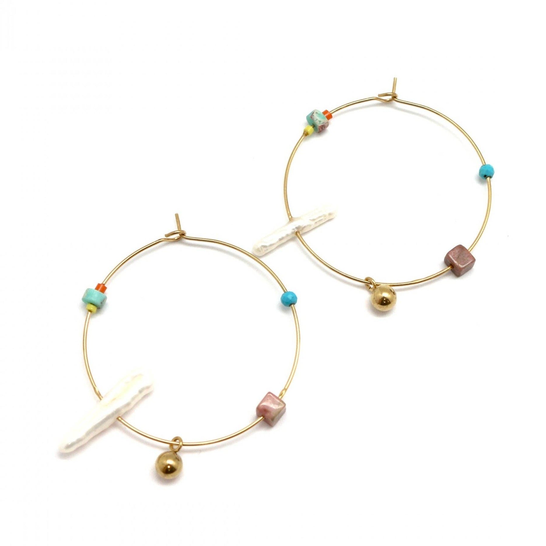 Part of the "French Flair Collection," these pearl and stone hoops embody a sense of effortless, organic elegance. They are a celebration of individuality and artistry, offering a sophisticated way to incorporate a touch of nature's beauty into your personal style.