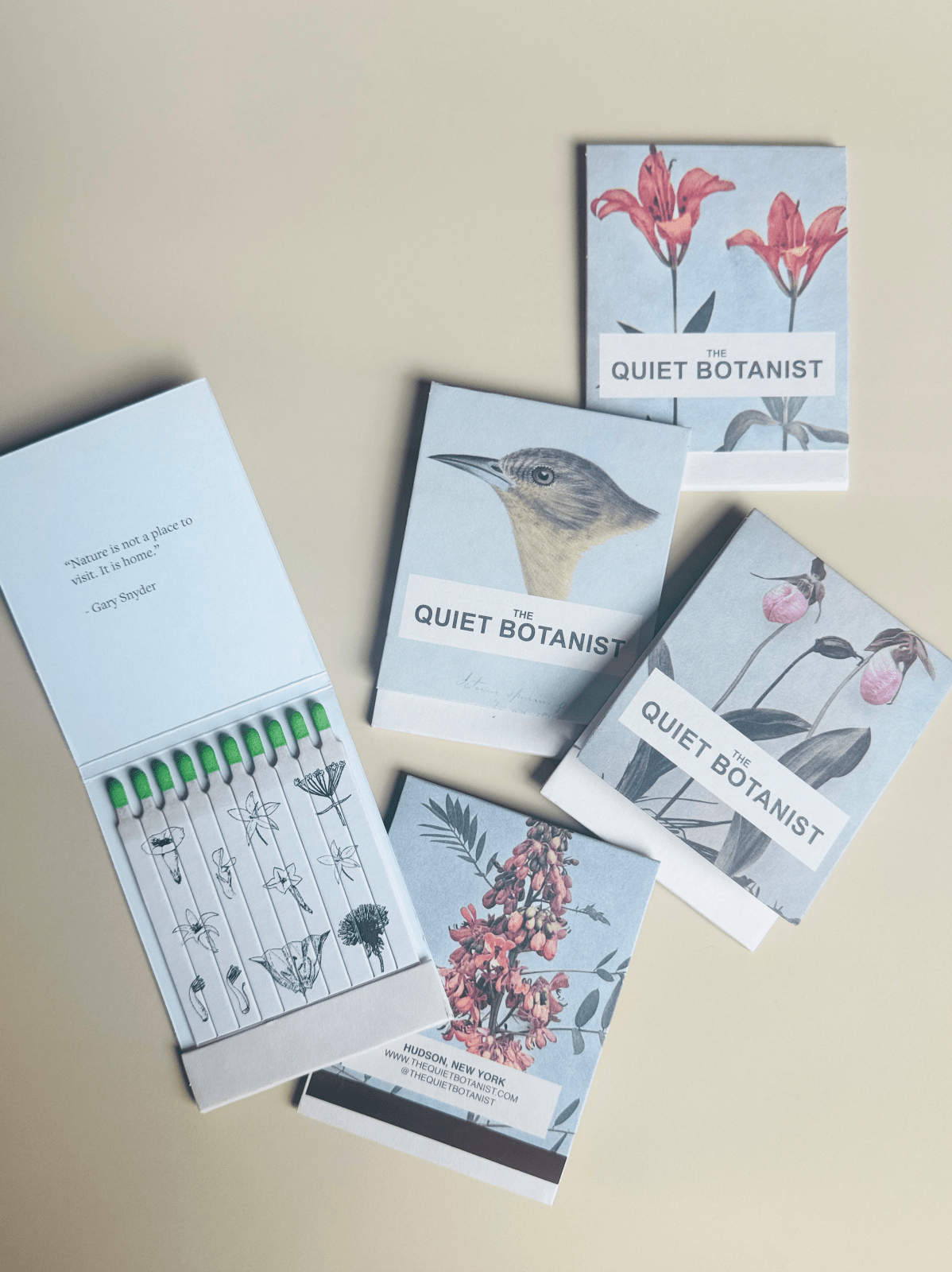 Each order comes as a pack of 24 matchboxes featuring an assortment of our current wildflower collection designs. These matches are large scale and consciously made with biodegradable and sustainable materials. Since new collections debut every two months, these Day Lily matches are limited edition, so grab them before they are gone!