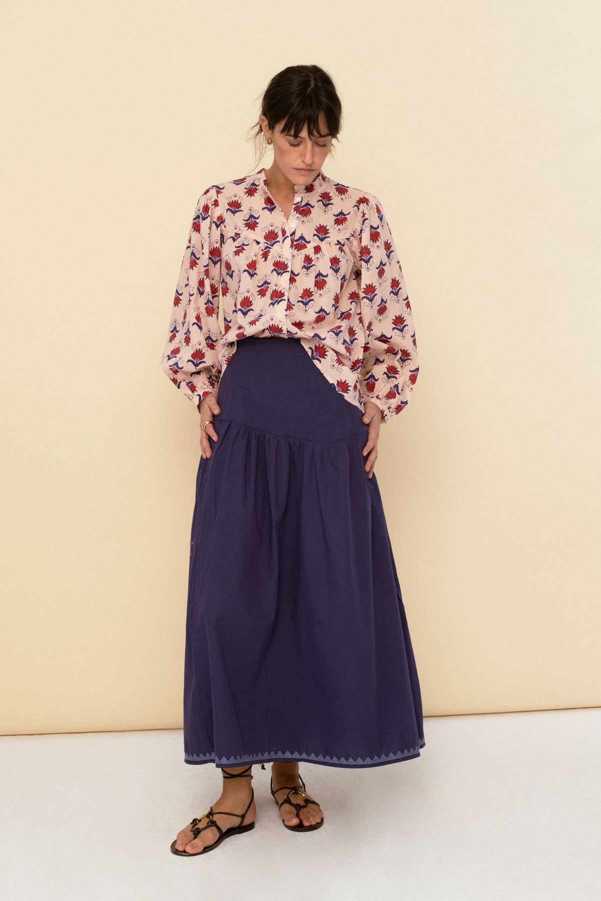 Our classic Vanessa blouse is back and reimagined for spring in a beautiful, hand-printed block floral design. Crafted from a luxuriously lightweight cotton voile, this blouse drapes beautifully, making it an effortlessly elegant piece for your seasonal wardrobe. The airy, breathable fabric and classic cut offer both comfort and sophistication, perfect for warm weather.