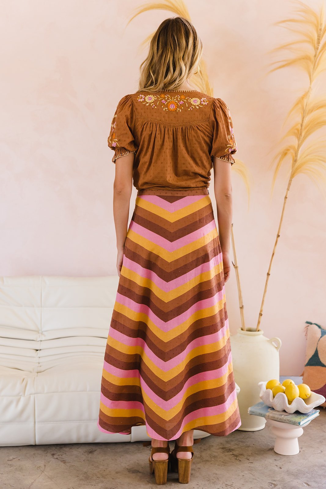 Fall in love with the oh so '70s chic Penny Skirt in our groovy Boogie Chevron print. Designed in our beautiful lightweight and textured cotton dobby fabrication - this skirt is all kinds of fabulous with a vintage charm. A true midi-length silhouette, designed with a fixed waist, invisible side zip, and draped A-line cut that is flattering on all shapes and sizes. We're obsessed!