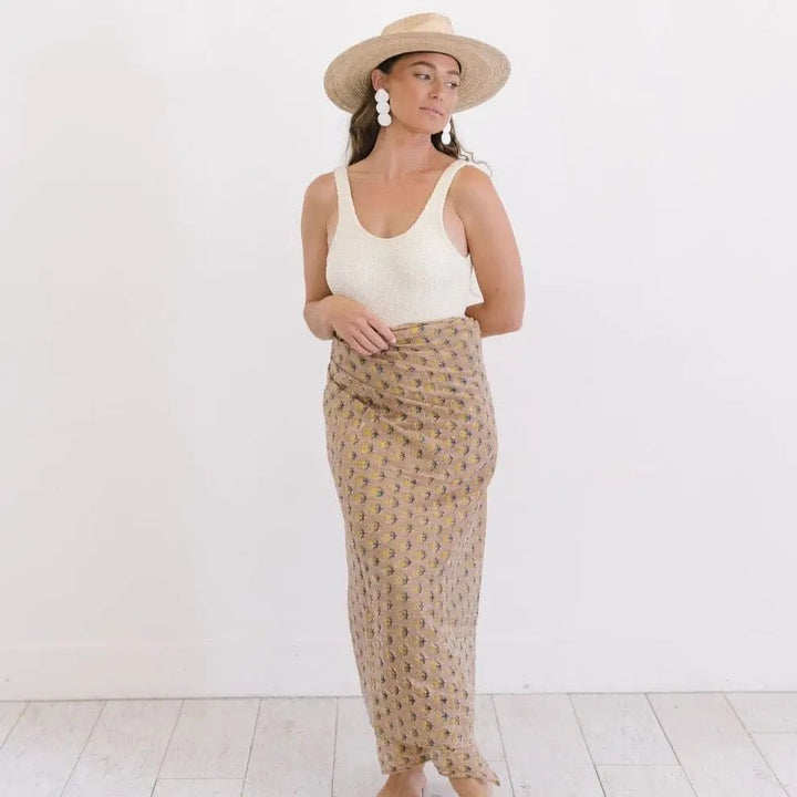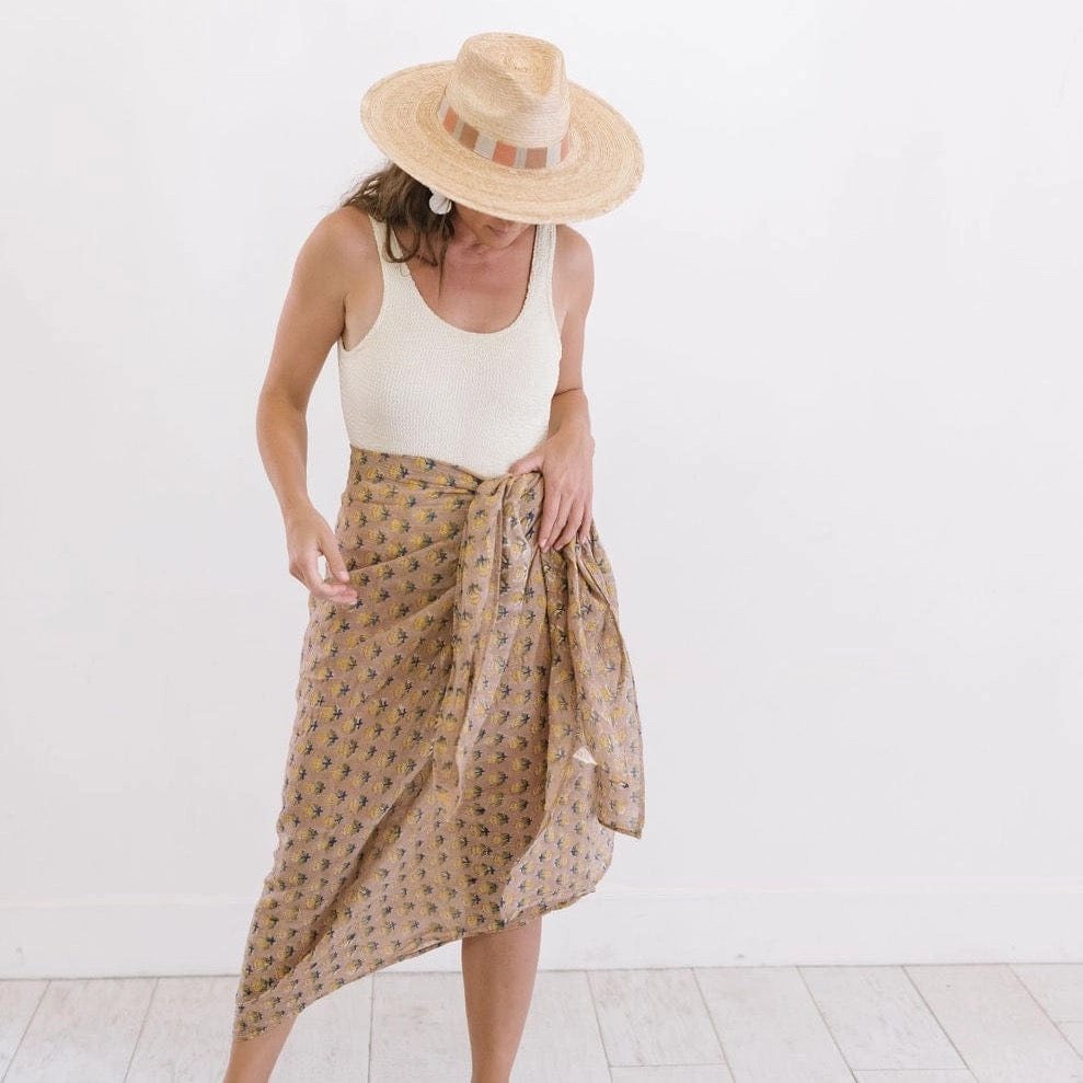 Breezy, comfortable, and versatile the Sandy Dune Sarong can be worn tied around the waist or even tied around the neck as a dress.