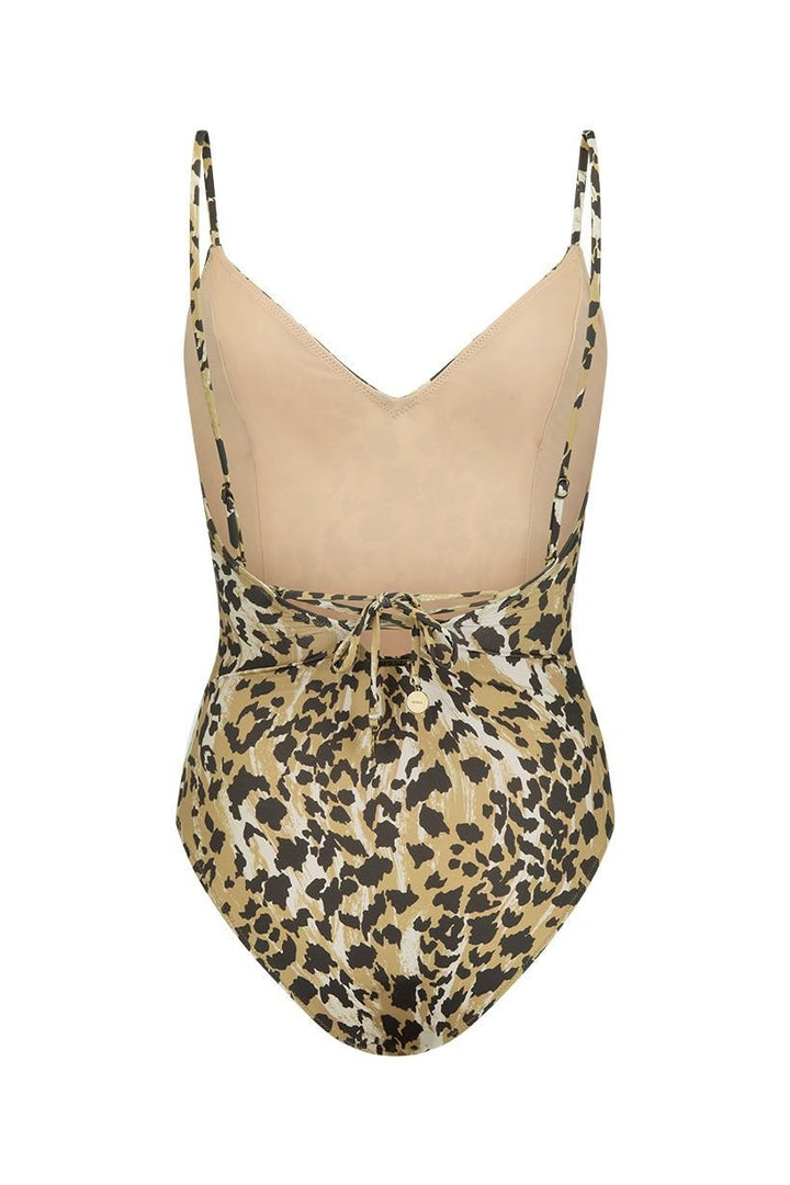 The Belle Mare One Piece in Pepper is chic and striking with a low back feature with a cross over tie detail and a plunging deep V neckline. This one piece swimsuit includes adjustable straps for versatility of shape and style and is the perfect swim staple in a classic Spell Leopard print. A cheeky cut, our one piece is for endless sun washed days by the water or worn with our denim shorts and sandals for biking down sandy streets on the way to the ice cream store.